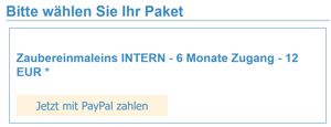 Bitte manuell 40 Euro per Paypal an: zaubereinmaleins@gmail.com senden. Ich melde mich dann per Mail und lege den Zugang manuell an.